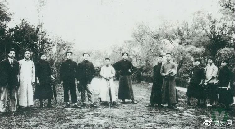 1920年5月8日,新民學會部分會員在上海半淞園合影。左七為毛澤東。